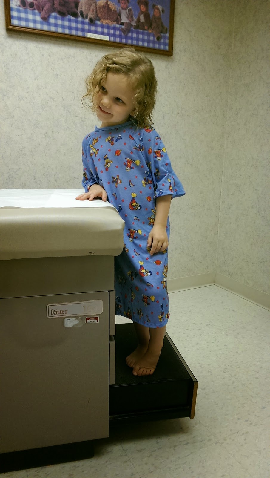 The nurse called us back after a few minutes and the exams started. It felt very strange to be there with a 4 yr old girl and a 2 yr old boy AGAIN, because I'd just done that ohhhh...4 years ago with Violet and Calvin. Sometimes my younger two feel like repeats of the older two.